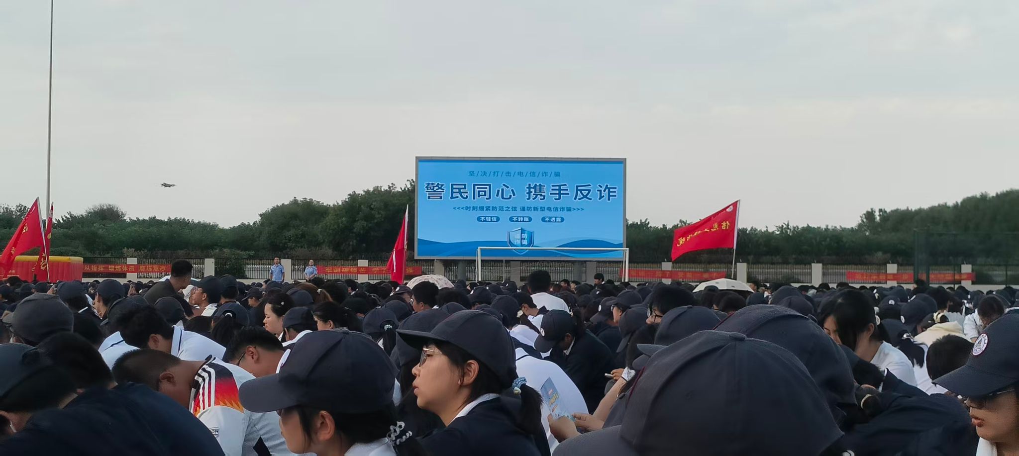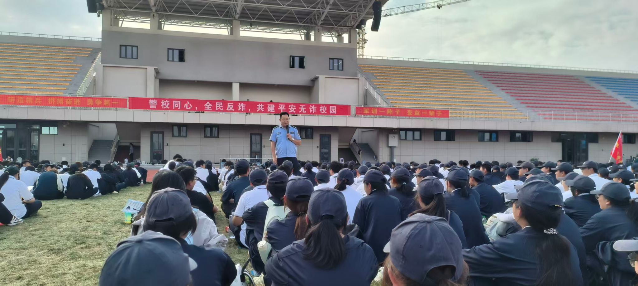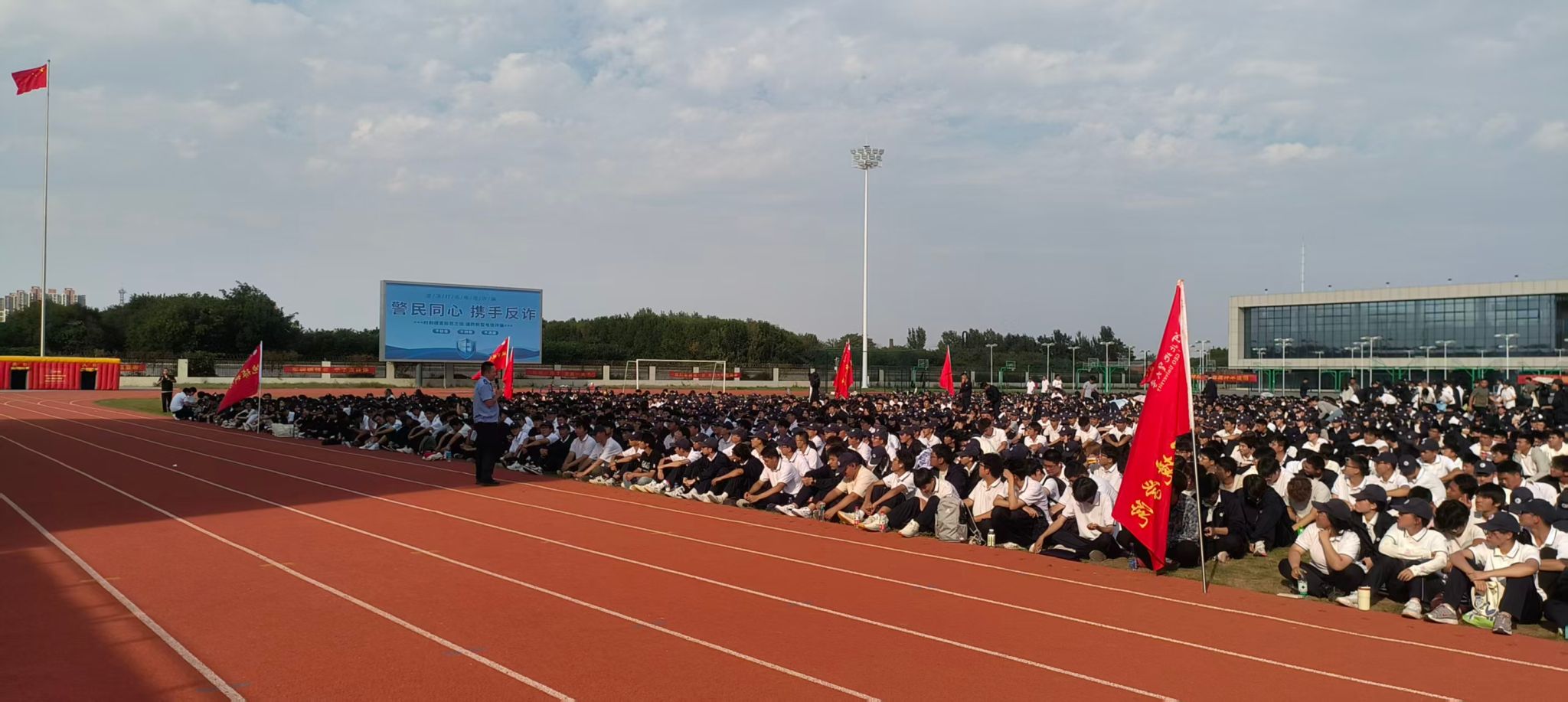 为进一步增强新生安全防范意识,筑牢校园安全防线,营造平安和谐的校园环境,2025年9月26日,河北地质大学安全工作处与藁城公安分局反诈蓝军紧密协作,在校足球场联合举办了以“警校同心,全民反诈,共建平安无诈校园”为主题的大型反诈宣讲座谈活动。全校2025级4000余名新生共同参与了此次意义深远的安全教育课。
