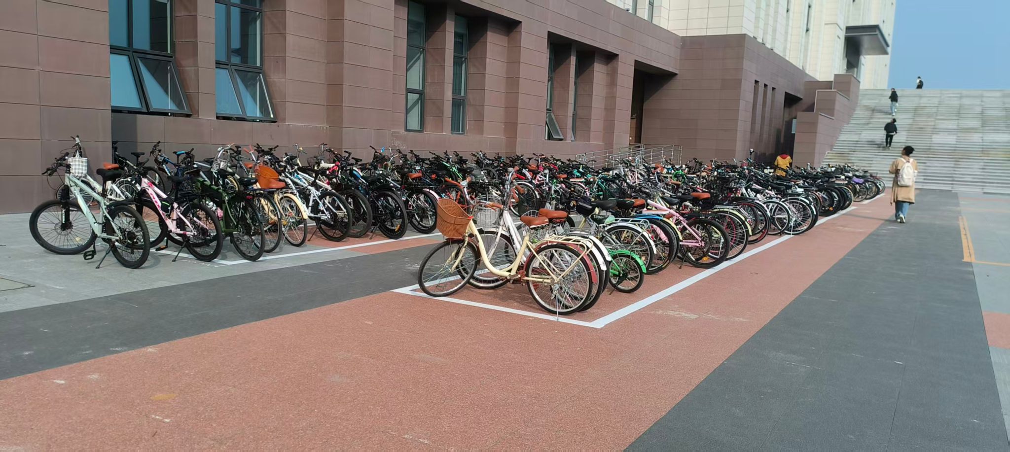 2.私人自行车:请停放入专用车棚或划定区域,并做到摆放整齐,不得占用行人通道、绿化带及安全出口,共同维护校园环境整洁与道路畅通。