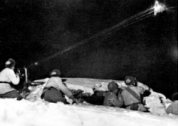 1950年12月,在朝鲜长津湖,中国人民志愿军向美军阵地射击。