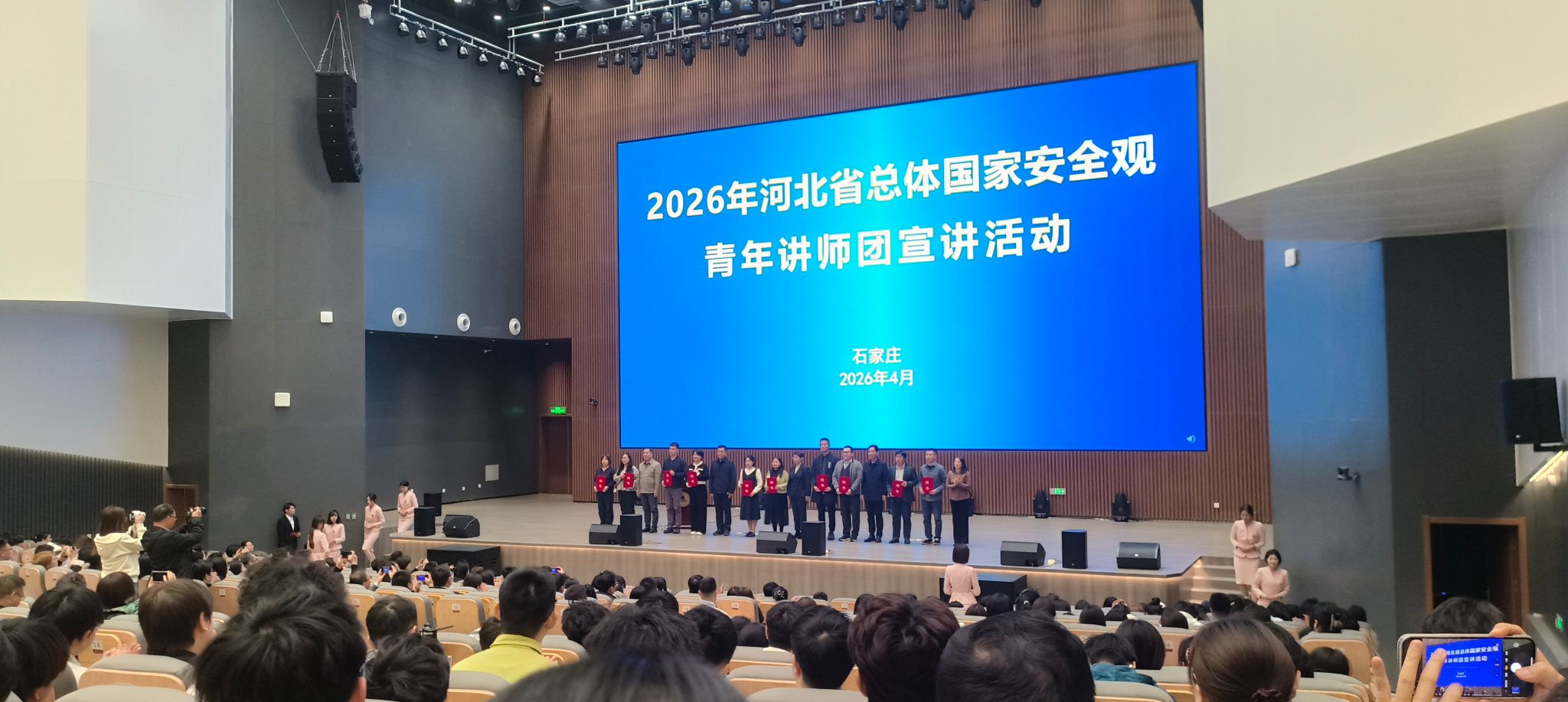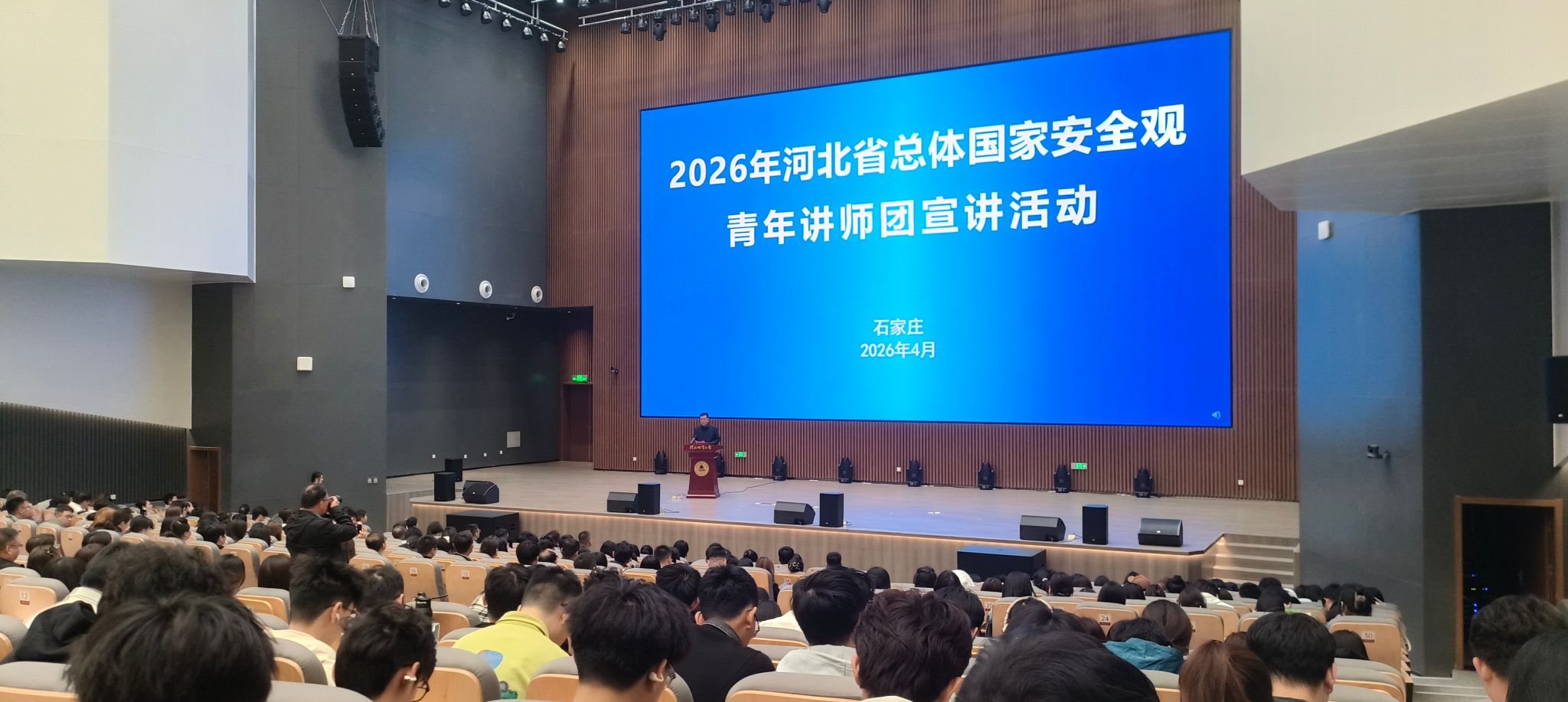 4月13日,以“统筹发展和安全护航‘十五五’新征程”为主题的2026年河北省总体国家安全观青年讲师团宣讲活动在我校正式启动。校党委书记和志强,团省委书记李凡出席活动。
